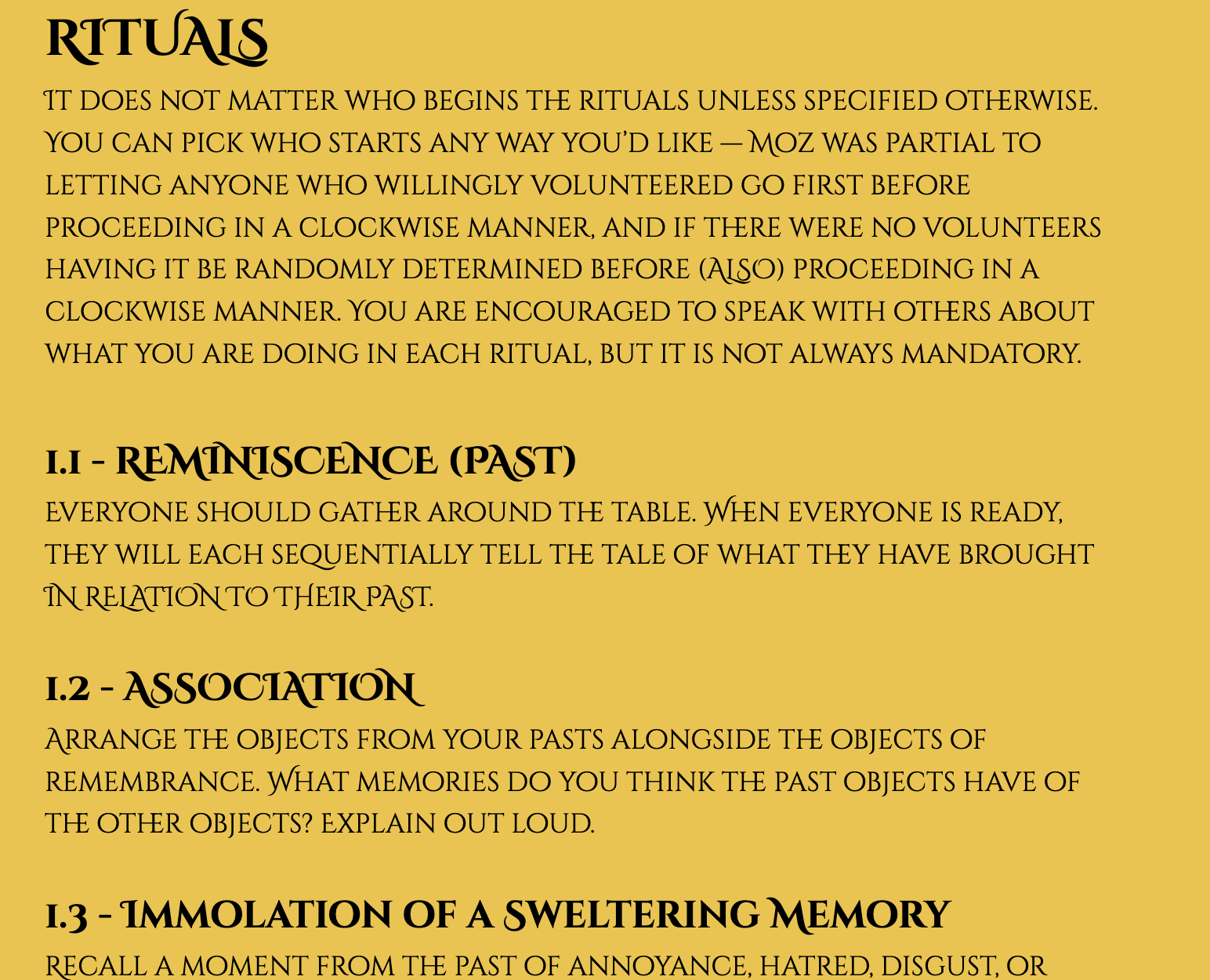 SOLSTUTIO SACER contains 37 rituals. You do not have to experience all of them.